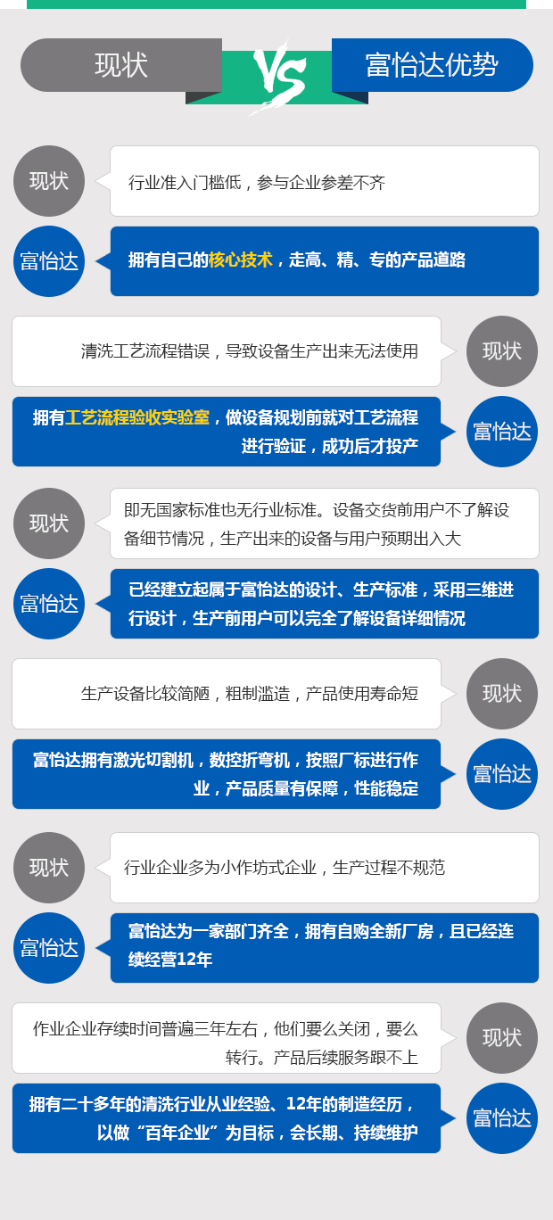 清洗行業(yè)均為行業(yè)專用設(shè)備,目前即無(wú)國(guó)家標(biāo)準(zhǔn),也沒(méi)有形成行業(yè)標(biāo)準(zhǔn),所以設(shè)備是各取所長(zhǎng),富一達(dá)的自動(dòng)超聲波清洗機(jī),通過(guò)式超聲波噴淋清洗機(jī)、往復(fù)式旋轉(zhuǎn)噴淋清洗機(jī),渦旋式清洗機(jī)均按富怡達(dá)廠標(biāo)標(biāo)準(zhǔn)進(jìn)行設(shè)計(jì)、制作。